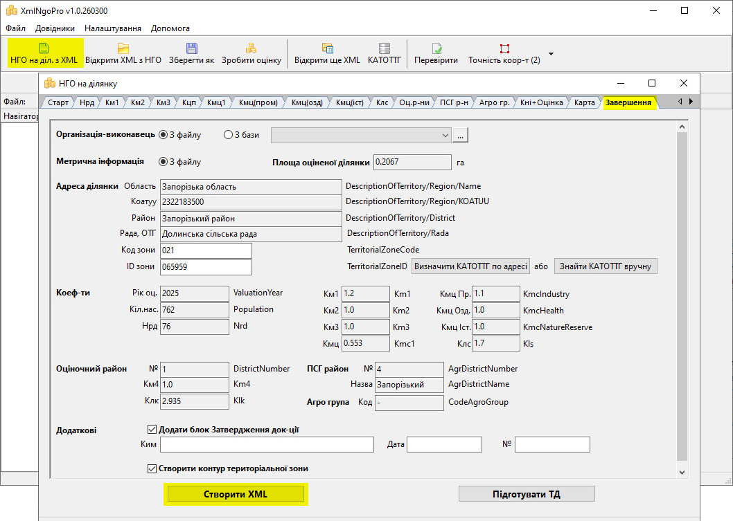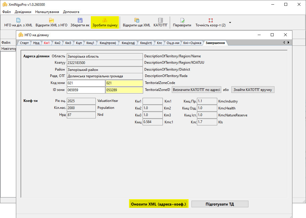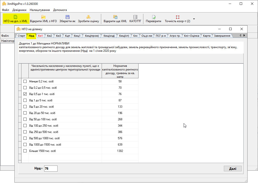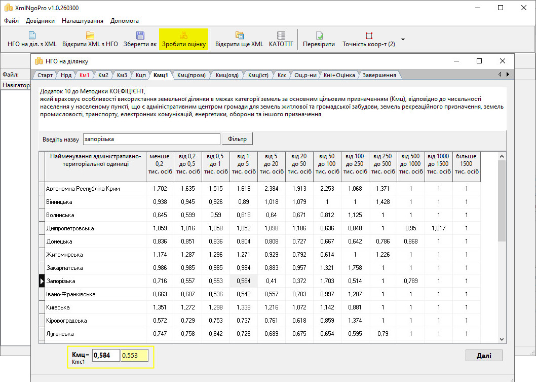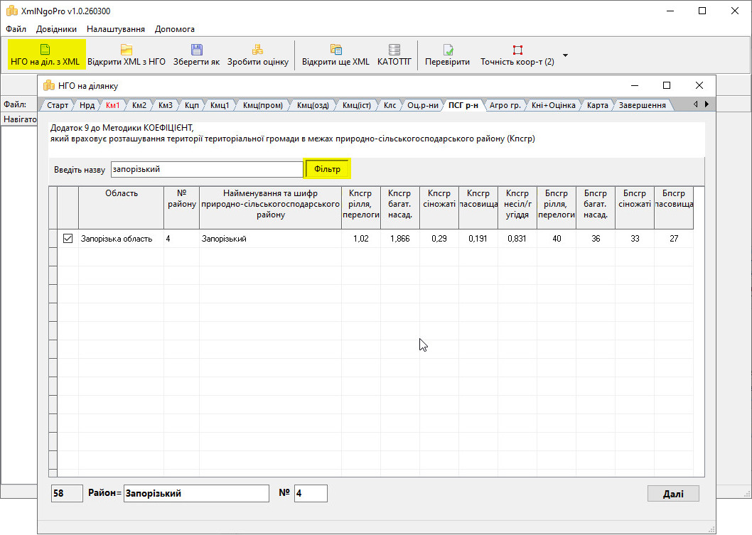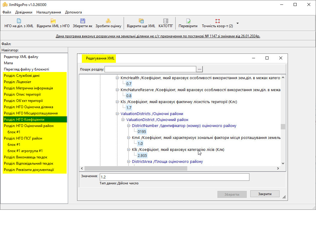• Програма полегшує створення XML з НГО завдяки зручному механізму пошуку коефіцієнтів (км1, км2, км3, кмц, клс, тощо),