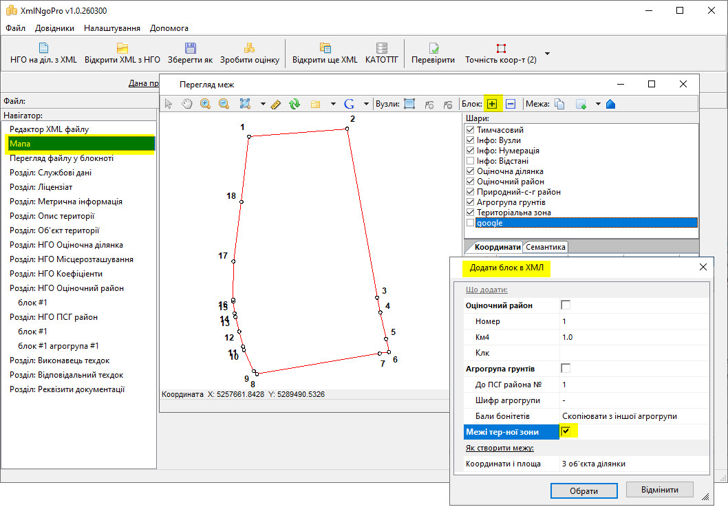 • Додавання нових блоків шляхом копії меж з існуючих у файлі або імпорту з файлів форматів txt, json, in4.