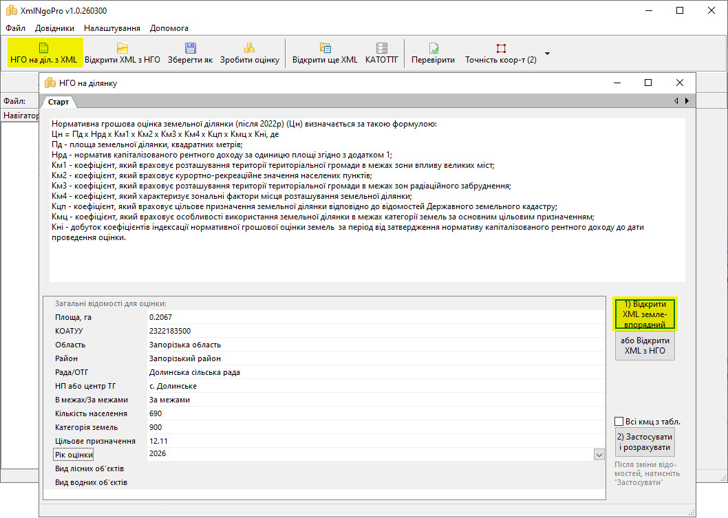 • Для будь-якого файлу можна перевірити вказані в ньому коефіцієнти і розрахувати нормативну грошову оцінку ще раз з використанням правильних коефіцієнтів індексації.