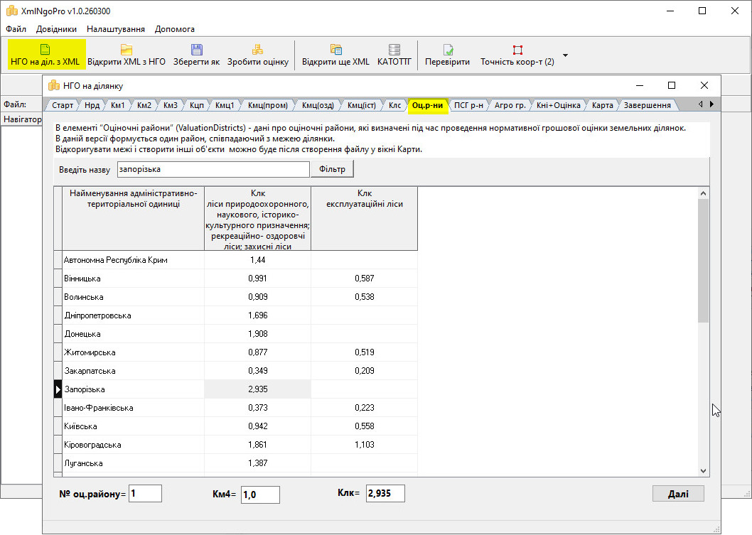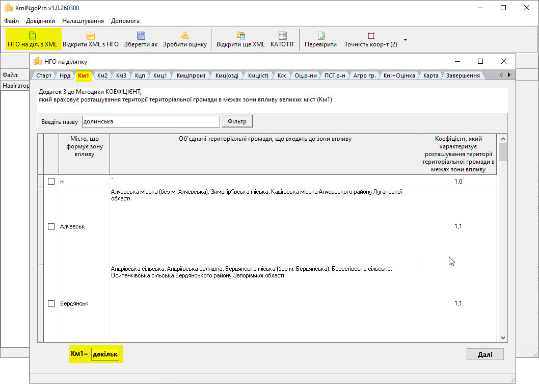 • Програма полегшує створення XML з НГО завдяки зручному механізму пошуку коефіцієнтів (км1, км2, км3, кмц, клс, тощо),